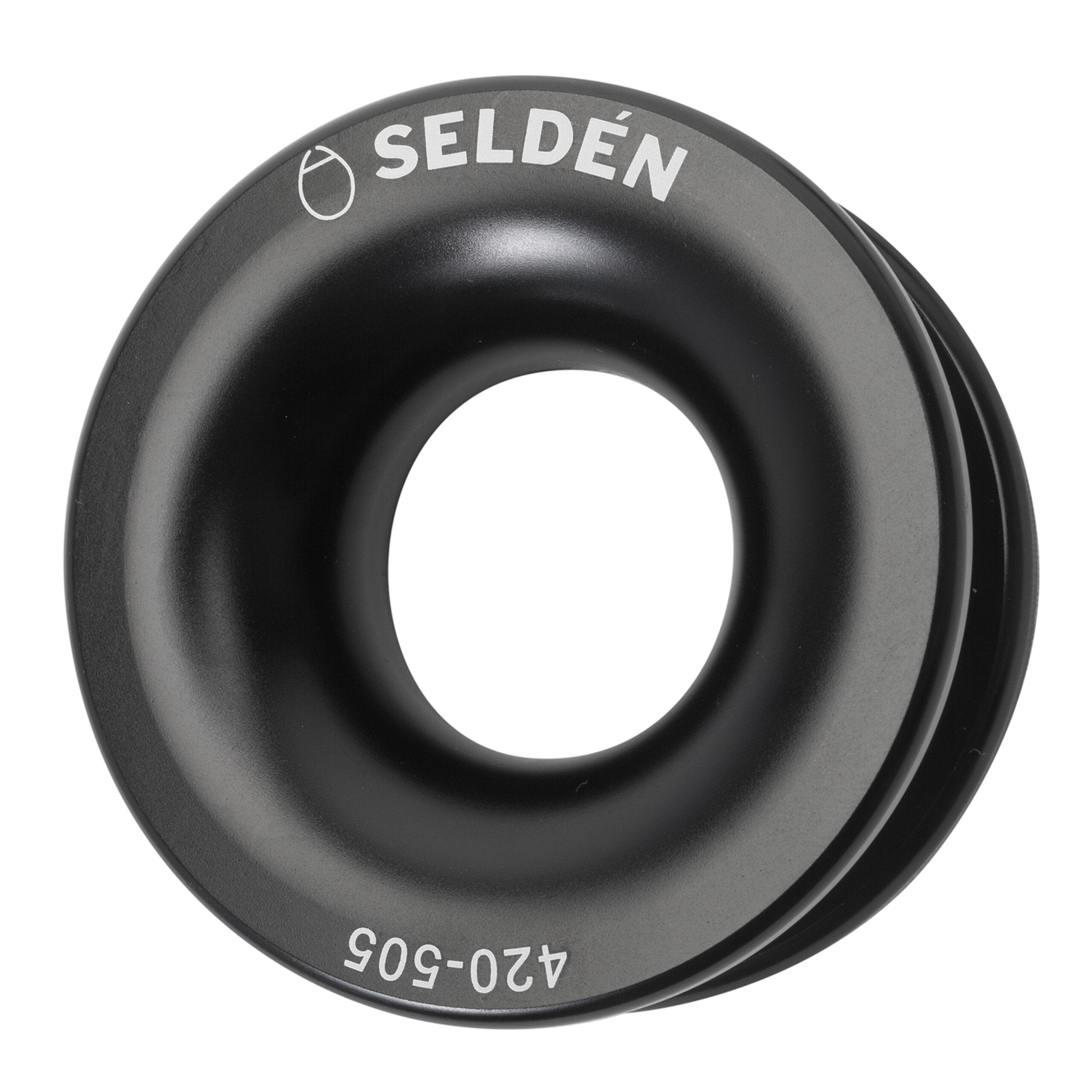 A low friction ring is a simpler and lighter alternative to a plain bearing block. They are produced in black anodised aluminium and have a big inner radius for low friction and an outer slot for attachment of a line or rubber cord. Suitable applications are backstay cascades, barber haulers, kicker tackles or any other applications with static load.