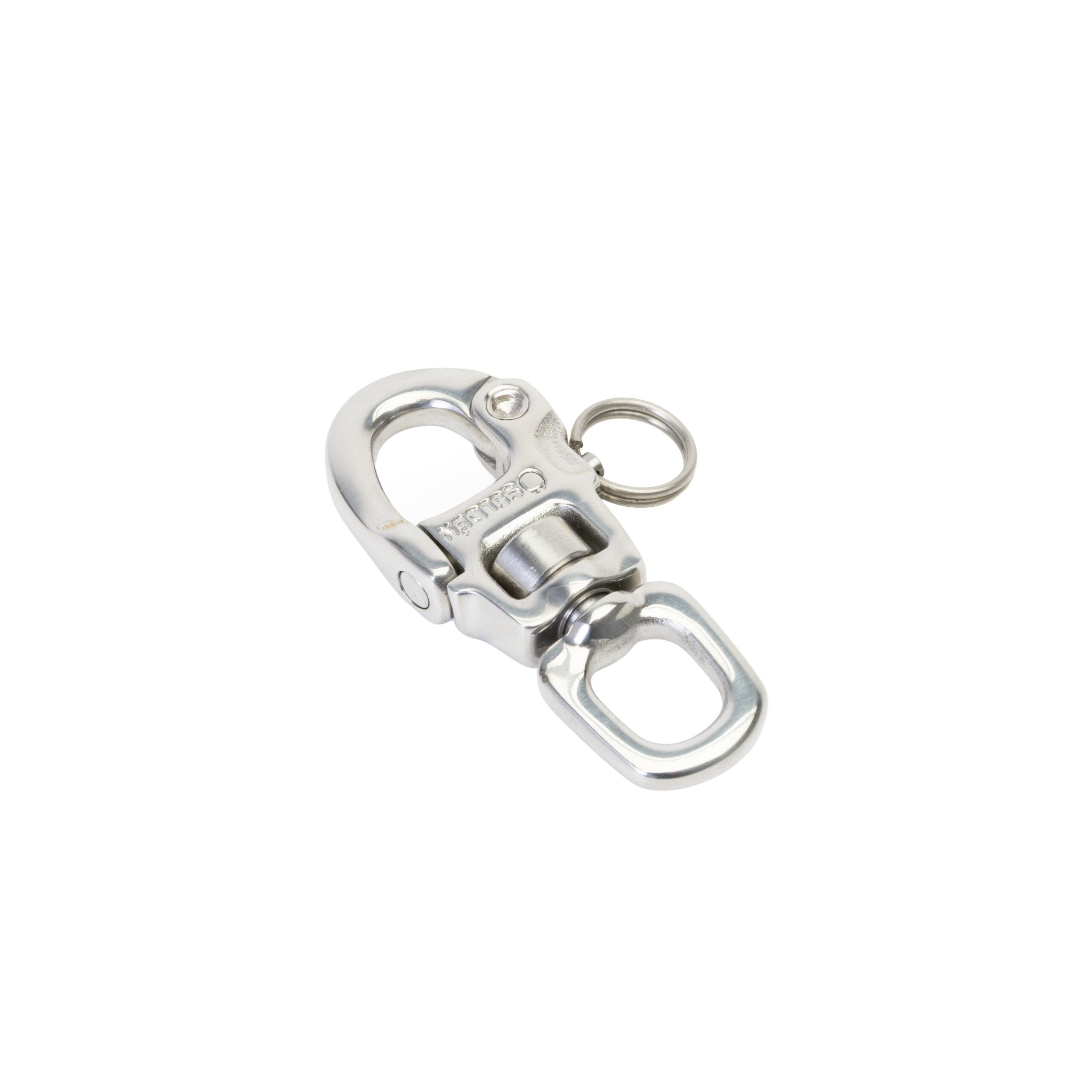 A swivelling snap- shackle made of high strength Duplex 2205 stainless steel for optimized weight in relation to work load. High gloss mirror finish.